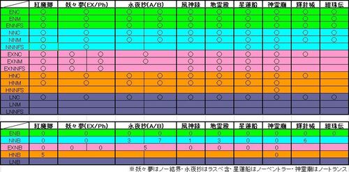 ブログの最後に表を載せるようにしました その記事の時どんな状態なのか分かるのも面白いな~と思うんで暇な時逆算して過去の記事に載せるようにしたいですね。 現時点で56記事目なんで途方もない作業になると思うんですけどw 神霊廟(Hard) NNNFS #東方_Cle…